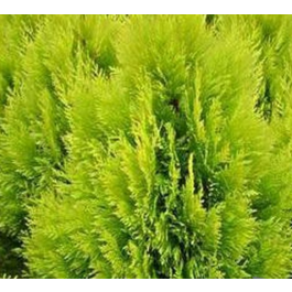 Thuja med gule nåle. Væksten er kompakt og opret. Bliver op til 2 - 4 m høj.